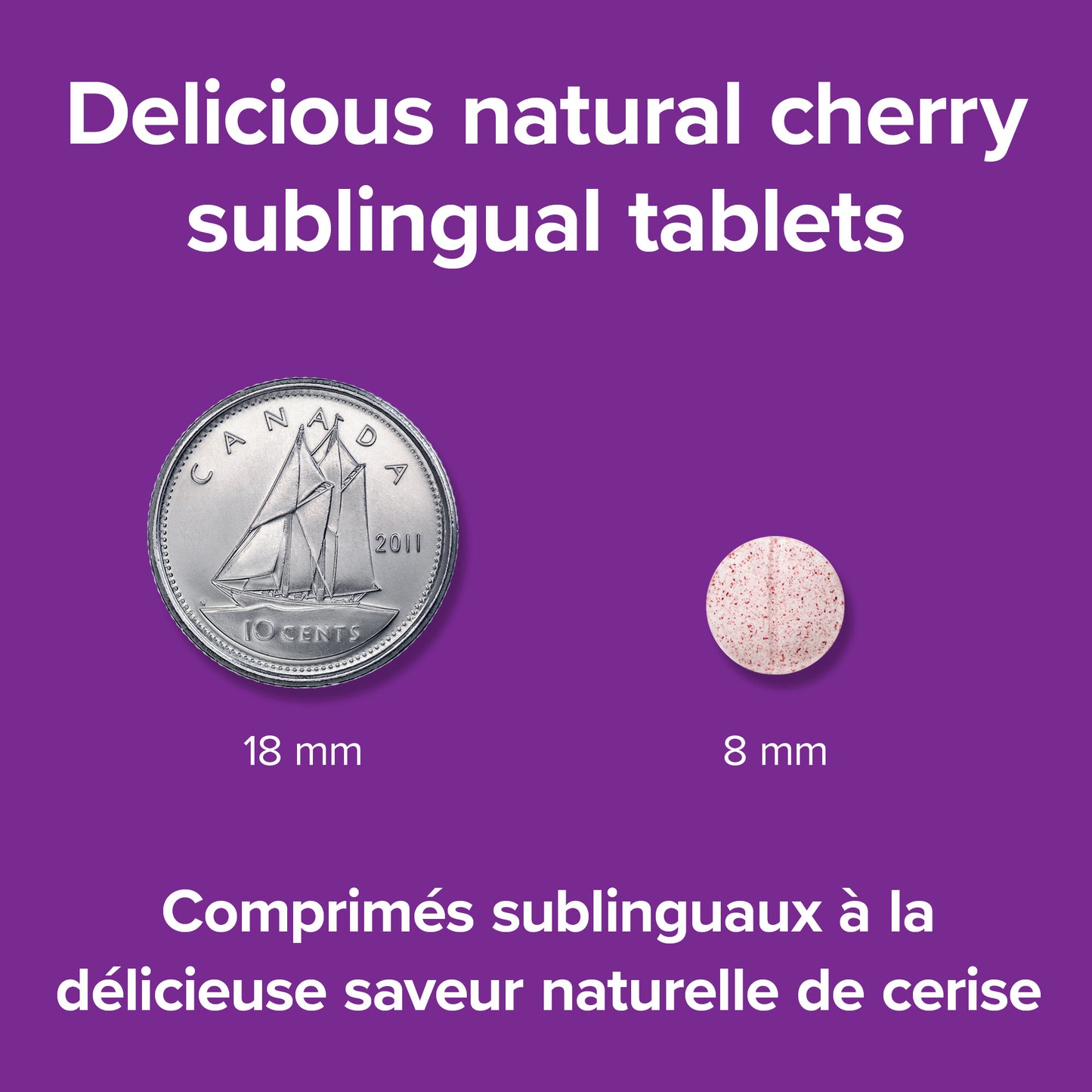 These sublingual, cherry-flavoured tablets are placed under the tongue and dissolve easily to enter the bloodstream quickly.